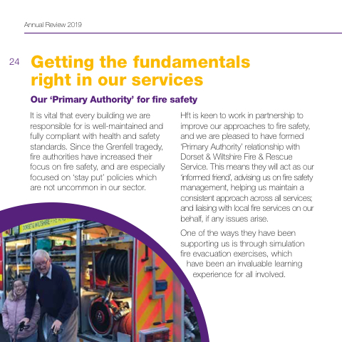 Hft is keen to work in partnership to improve our approaches to re safety, and we are pleased to have formed ‘Primary Authority’ relationship with Dorset & Wiltshire Fire & Rescue Service. This means they will act as our ‘informed friend’, advising us on re safety management, helping us maintain a consistent approach across all services; and liaising with local re services on our behalf, if any issues arise.