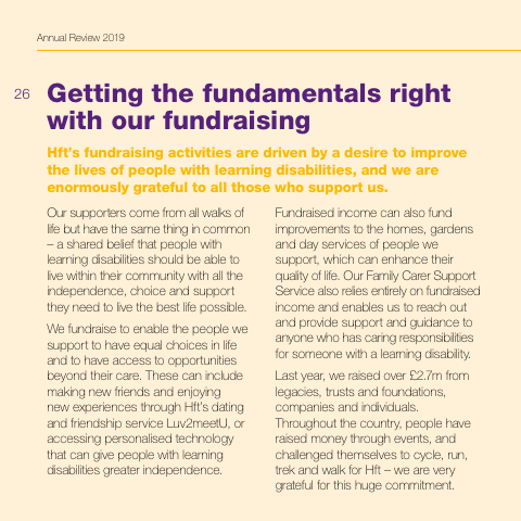 Hft’s fundraising activities are driven by a desire to improve the lives of people with learning disabilities, and we are enormously grateful to all those who support us.