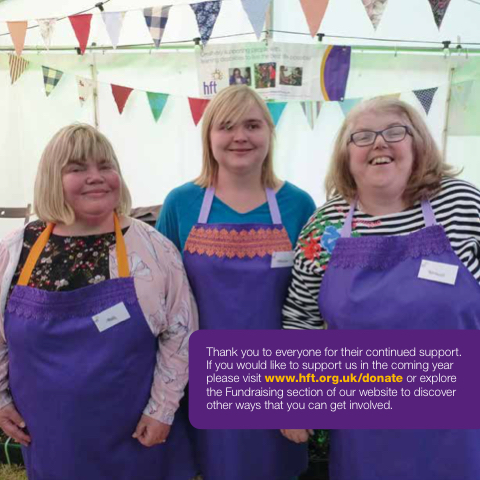 Thank you to everyone for their continued support. If you would like to support us in the coming year please visit www.hft.org.uk/donate or explore the Fundraising section of our website to discover other ways that you can get involved.