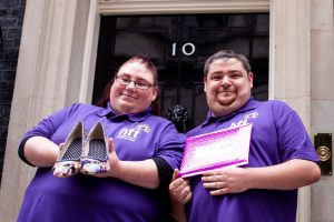 On 7 June 2018, members of the charity’s Voices to Be Heard group delivered a pair of custom-made shoes to 10 Downing Street for Prime Minister Theresa May, decorated with faces of people supported by Hft. Since then, the charity has hosted several MPs at their services across the country.