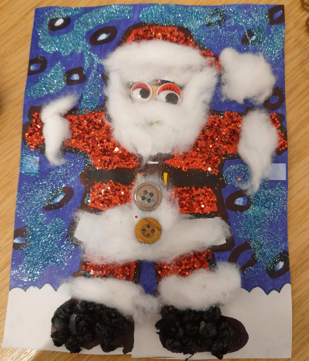 Laura’s winning design, which featured a magnificent Santa Claus using cotton wool, red and blue glitter, googly eyes, real buttons and a bunch of creative flair was the judges’ overall favourite. It will now be winging its way to Hft supporters through the mail! Here’s what the judges said about Laura’s design: