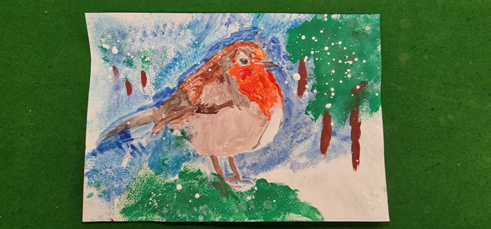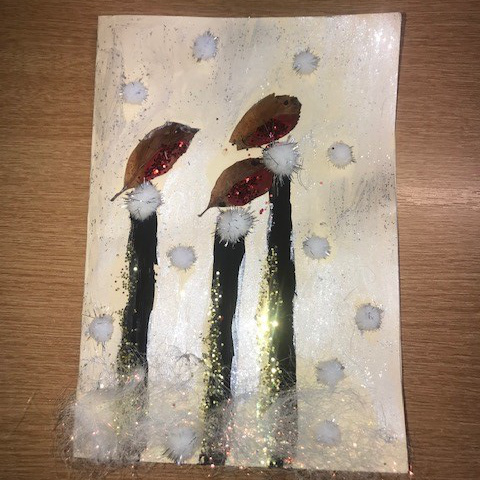 “This instantly made me feel Christmassy and a great use of different materials, clever way to use leaves for the robins!”
