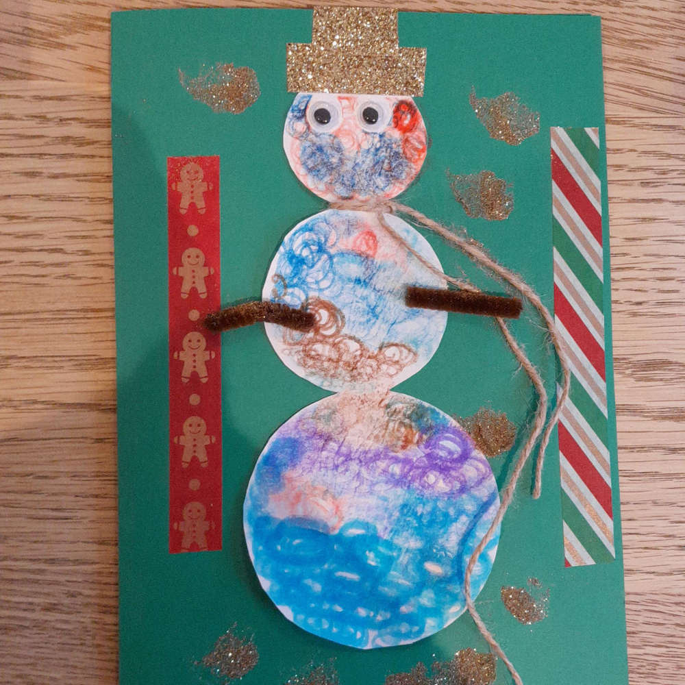 Julia’s Christmas card was a very colourful snowman, featuring pipe cleaner arms, googly eyes and a sparkly gold hat! The judges said: