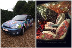 Louis’ favourite creation to date is the ArtCarr – an up-cycled Ford Focus that he transformed alongside friend and fellow artist, Geri Wilkins. He says, “I love cars and it was brilliant to be able to paint my design directly onto an actual car that was no longer used. I really enjoyed using spray paint, which made me feel like a graffiti artist, and enjoyed getting my design for the seats printed onto fabric and learning how to make a pattern so we could cover the seats and headrests.