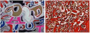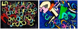 He has used his home-based workshop to host two exhibitions, the first featuring his staple ‘dotty pictures’ and the second featuring his graffiti artwork, that Louis created using his own abstract letterforms, and a large-scale mural with life-size drawings of himself and his girlfriend, Jess.